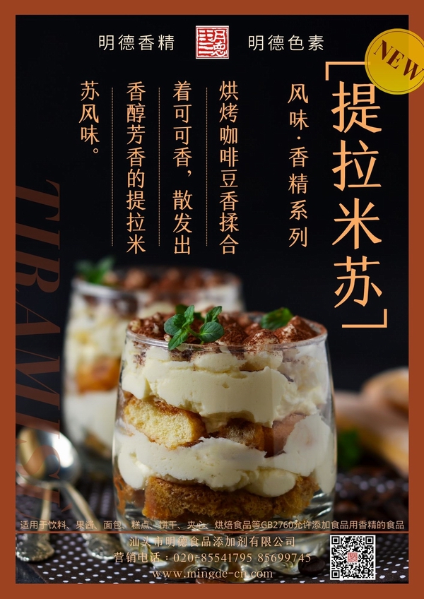 名 稱(chēng):提拉米蘇香精 編 號: 類(lèi) 別:甜味香精 |