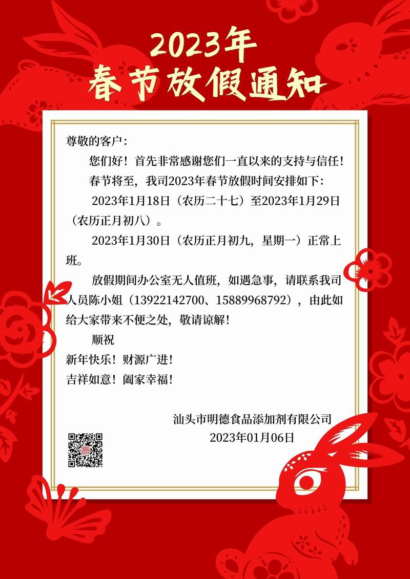 明德食品添加劑祝您春節快樂(lè )