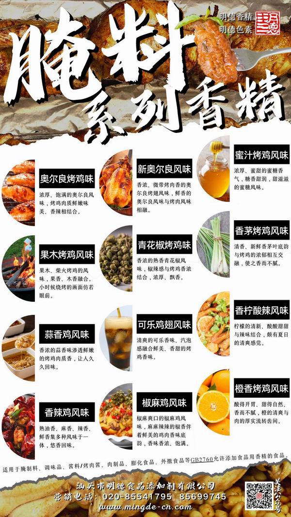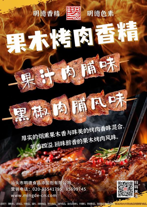 烤肉香精領(lǐng)域我們潛心專(zhuān)研,結合市場(chǎng)潮流,消費者喜好,汕頭市明德食品添加劑有限公司現有多種烤肉相關(guān)風(fēng)味的香精,供您選擇。并持續努力研發(fā)更多符合市場(chǎng)需求的風(fēng)味。